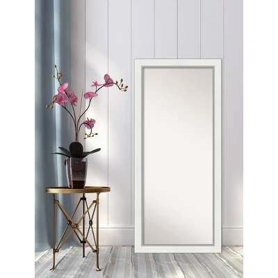 Give your home or office the finishing touch with this full-length Non-Beveled Mirror framed in the Eva White Silver frame. Individually made using traditional custom framing techniques, it has the quality you would expect from your local frame shop. It holds its value with premium finishing that can be appreciated up close. For placement on the floor, lean the mirror at a stable angle against the wall. We also give you everything you need if you want to hang your wall-mounted mirror without the hardware showing. Because of our attention to detail and focus on artistry, architects, interior designers, and homeowners alike choose this mirror to create beautiful living spaces.