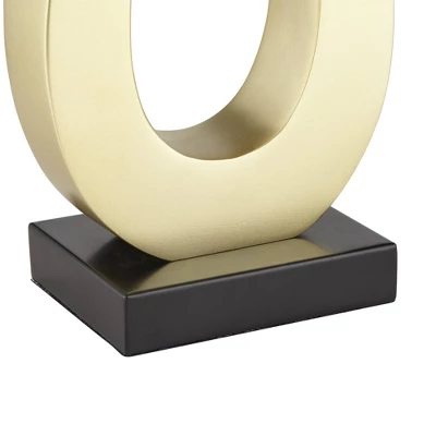 - Gold finish open loop profile bases. Metal construction. Square black finish pedestal at the very bottom.