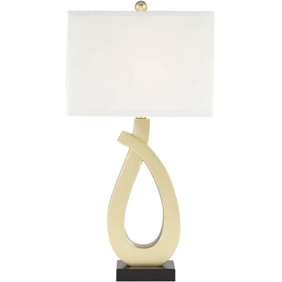No matter if you are lighting up your living room or charging your electronic devices, the Simone gold and black table lamps set of two is a must-have for your home. From the 360 Lighting brand, the each lamp features a swirl-like metal body in a gold finish. A square black base sits underneath, while white rectangular shades are on top. Each lamp comes with a USB port so you can charge smart phones and other devices with ease.