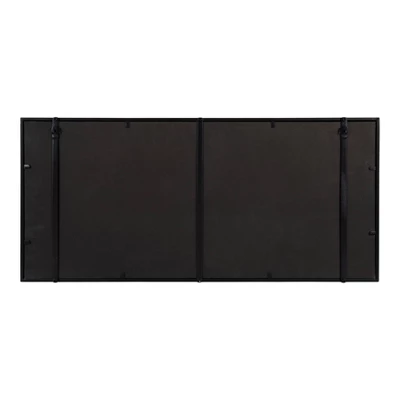 This framed mirror combines industrial chic home decor with functionality. Hang this mirror in your entryway for one last look out the door and to hold your keys, hooks, mail, or anything you need to remember as you leave the house. You can also hang this mirror in a bathroom and use the shelf for your make up our toiletries. This framed mirror is constructed of metal with a satin black finish. It arrives completely assembled and ready for use. Two metal keyhole hangers are built into the back of the frame for easy and secure wall display. The outer dimensions measure 18 inches across and 40 inches high. This multi-functional wall mirror with shelf is the perfect accent to organize to your home, kitchen, or entryway.
