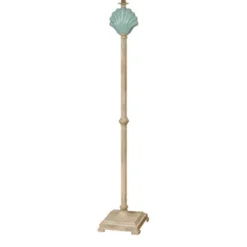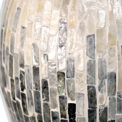 - Multicolored Capiz Shell On White Ceramic Lamp Body.