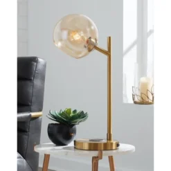 Inspired by contemporary lighting designs, this metal desk lamp features a slender brass-tone profile with a simple metal shade. An adjustable neck and shade provide targeted illumination. Table lamps are the perfect way to spice up your room, all while providing warm ambient lighting to set the mood. Brighter, well-lit spaces always tend to look larger, smarter and so much more visually appealing. With our wide variety of table lamp shapes, sizes and styles, we’d say your future is definitely looking bright. And we go the extra mile to package, protect and deliver your purchase in a timely manner. The trusted source for stylish furniture, lighting, rugs, accessories and mattresses for every taste and budget, our wide assortment brings your space to life with furniture and decor that show off your style personality.