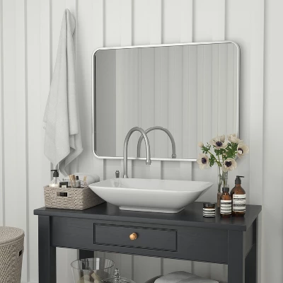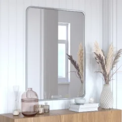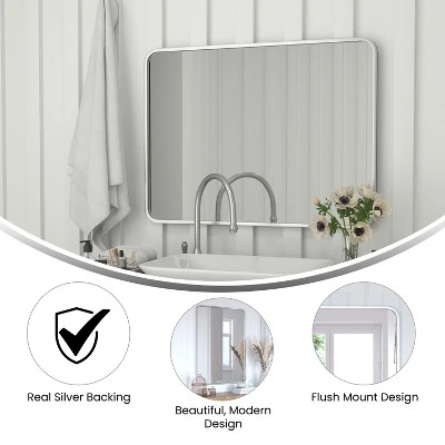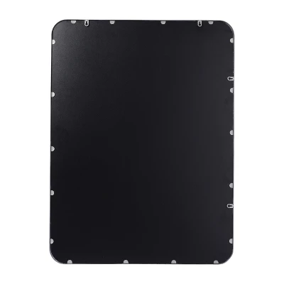 Instantly refresh any room in your home with this 40″ x 30″ rectangular wall mount mirror. The modern design boasts a slim, matte black metal frame that lends an up-to-date look to almost any decor. HD glass with real silver backing provides high reflectivity for a distortion-free image. Safety minded for today’s busy households, the shatterproof backing technology ensures the glass stays put in the frame when breakage occurs to prevent cuts to children or pets. The waterproof and rust-resistant design make this large mirror ideal for use in high humidity areas such as bathrooms, kitchens, and sheltered balconies. Hang this accent mirror vertically or horizontally to suit your personal taste with the included mounting hardware. Wipe clean with a damp cloth to keep your new mirror looking great.