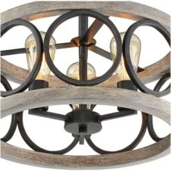 - Oil rubbed bronze finish. Metal construction. Faux wood finish resin construction accents.