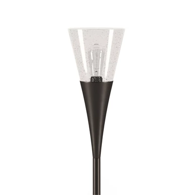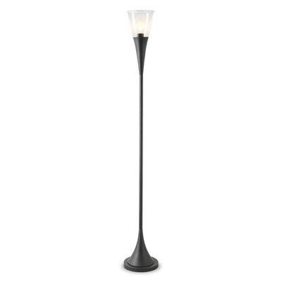 A handmade seeded glass shade creates a warm glow in your living room, bedroom, office, or dining room and brings a modern farmhouse appeal to your home. This floor lamp is crafted from steel and is a great addition to any home looking for an industrial-inspired illumination. The black metallic base adds a hint of industrial style making this a versatile floor lamp. A perfect choice next to your favorite reading chair or sofa, this floor lamp will easily become the focal point in any room such as the living room, bedroom, or home office.Features : The blackened bronze tones keep this piece understated but refined.It’s paired with a hand-made seeded glass shade.The shade is hand made from seeded glass. Each shade is slightly unique due to the nature of seeded glass.Bulb not includedCompatible with smart light bulbs such as Philips Hue, LIFX, IOTTY, TP-Link, Texsens, Flux, Samsung SmartThings, WiZ, and C by GE. Bulb is not included.Specifications : Product Weight : 9.36 lbsFrame Material : Glass