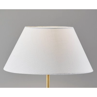 With a stylish blend of materials and striking tripod design, the Harvey table lamp brings modern chic vibes to any room and is perfectly suited for nightstands, end tables, accent tables, and desks. The triangle base in black metal finish continues up the pole before transitioning to a slender brass tube. Topping the lamp a is modified drum shade measuring 8″ tall and 15″ wide. The white linen shade adds soft texture to the contrasting metal lamp construction and diffuses the light with a warm glow. Featuring a 3-way rotary switch, light from a 100W bulb can be set to low, medium, high, or off to always bring the ideal level of brightness to your space. Complete your décor with the coordinating Harvey floor lamp.