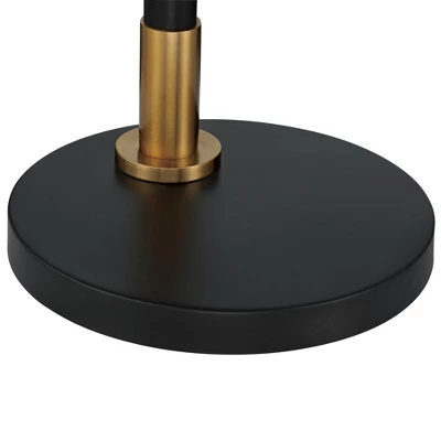 Possini Euro Design Modern Arc Floor Lamp 63 1/2″ Tall Warm Gold Black Metal Cage Off-White Linen Shade For Living Room Reading