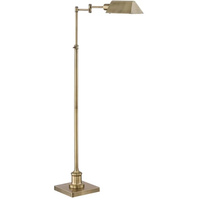 - Traditional adjustable swing arm pharmacy floor lamp with USB dimmer from the Regency Hill brand.