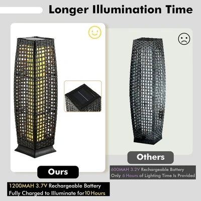 - [Solar-powered Floor Lamp]: These outdoor lanterns are powered by solar energy with no wiring required that not only saves your energy cost but is convenient for outdoor use. After charging 8H-10H in sunlight, these rattan floor lamps will work up 8H-10H at night.